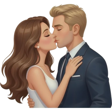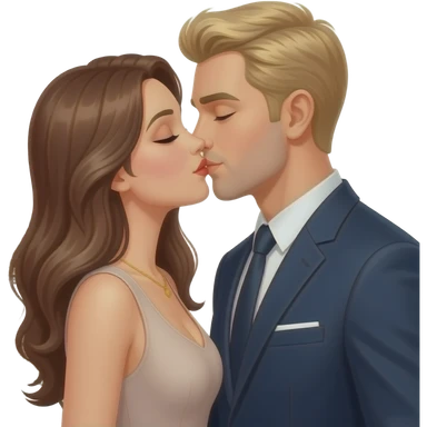 Couple kissing under the Eiffel Tower. She has long brown hair and he has blonde short hair. They are elegant emoji | AI Emoji Generator