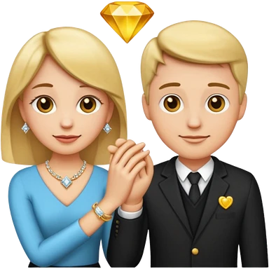 young couple kissing, girl with long cherry red hair and blonde eyebrows, gold A necklace, diamond ring, red bracelet, light clothes, boy with SHORT SNOW WHITE hair, silver ring with black stone, dark t-shirt emoji