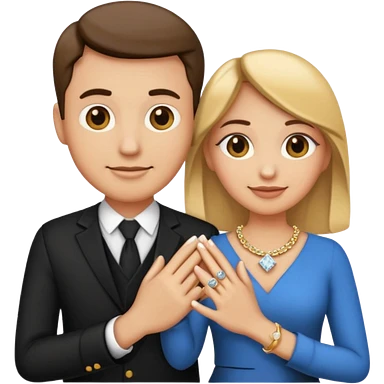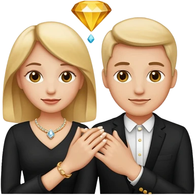 close-up of young couple kissing, girl with long cherry red hair and blonde eyebrows, gold A necklace, diamond ring, red bracelet, boy with stark white hair, silver ring with black stone, dark t-shirt emoji
