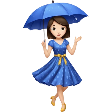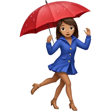 Brunette girl dancing under an umbrella while it's rain on the umbrella emoji