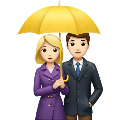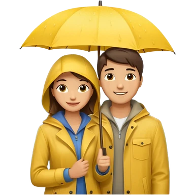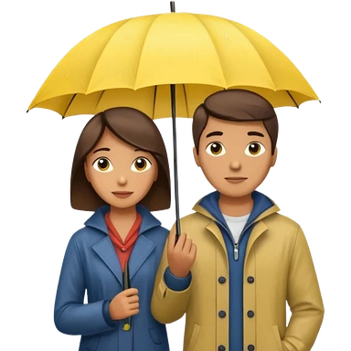Couple under yellow umbrella, City Rain Scenes emoji | AI Emoji Generator