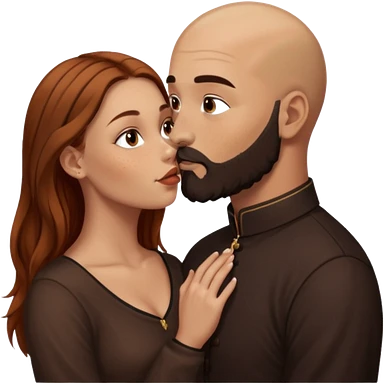 Couple white skin girl with black eyes and light brown long hair with a fish face like dressed in white with white girl with middle length black hair blue eyes very androgynous dressed in red emoji | AI Emoji Generator