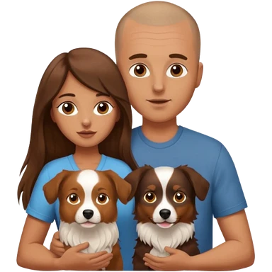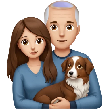 Couple with brown Aussie dog . Man shaved head white , woman long brown hair white skin emoji | AI Emoji Generator