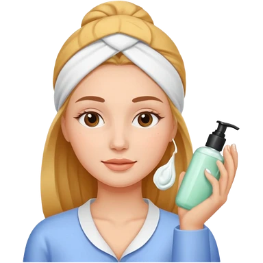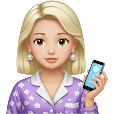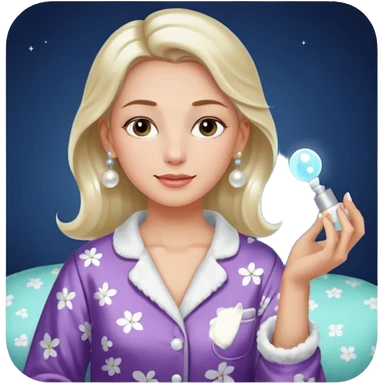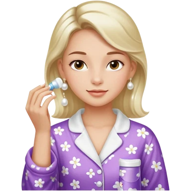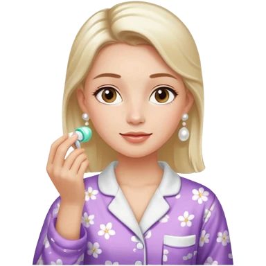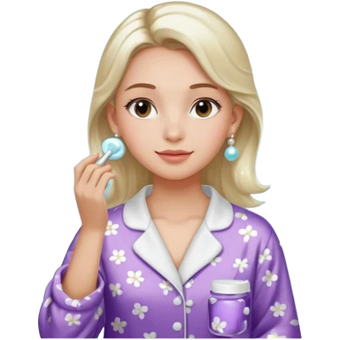干净女孩美学表情符号, 涂抹护肤品, 珍珠耳环, 发光肌肤, 睡衣, 柔和灯光 emoji