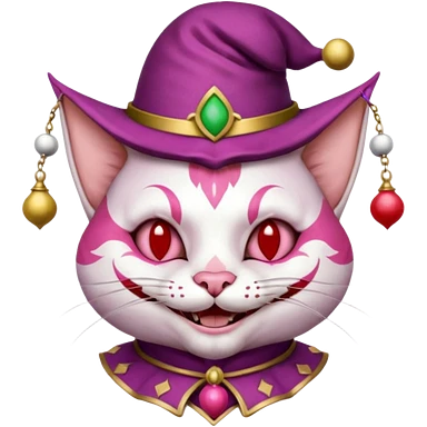 court jester cat medieval, poker card joker, pink, face only emoji