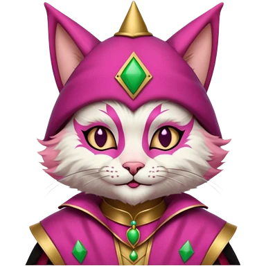 court jester cat medieval, single poker card joker, pink, face only emoji | AI Emoji Generator
