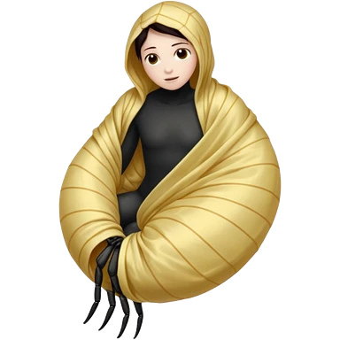 A full body image of a a human-shaped cocoon wrapped in spider silk. The rounded, segmented wrapping this is meant to be a web-wrapped human body emoji