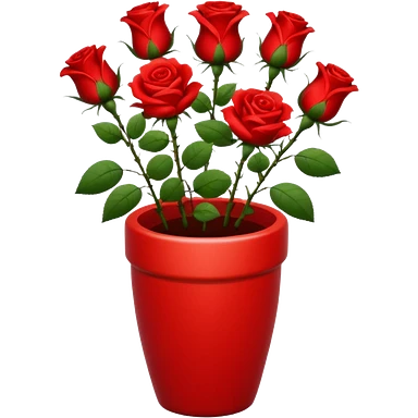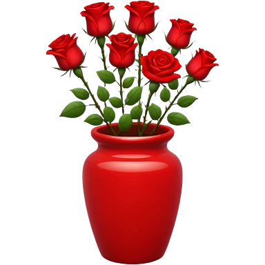 Scarlet red ceramic pot, tall and cylindrical, with red roses. emoji