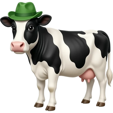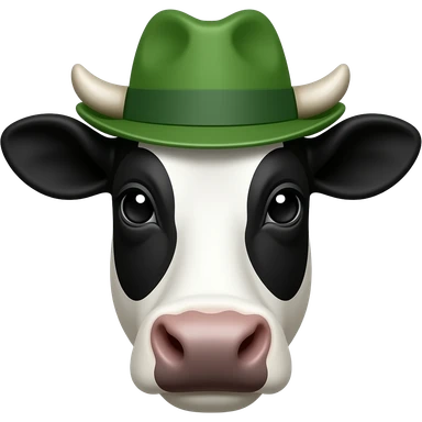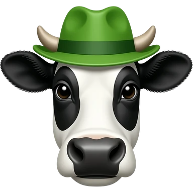 black and white cow front view wear a green hat with face close u emoji