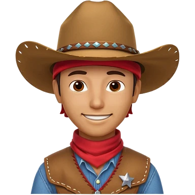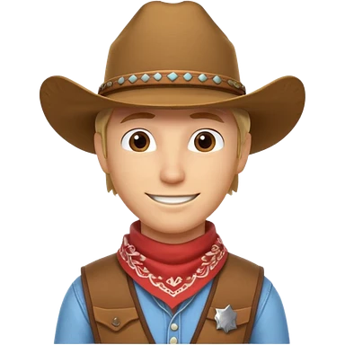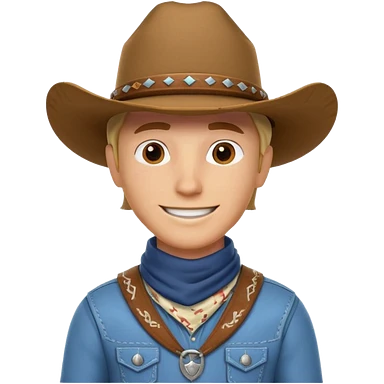 cowboy horse rider portrait, head and shoulders only, cowboy hat, bandana, western outfit collar, confident smile, 3D cartoon, mobile game icon style, clean background, no text, no watermark emoji