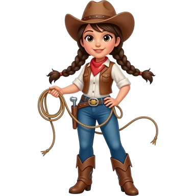 Brunette/ 2 long braid/ outfit cow girl/ entire body/ lasso emoji