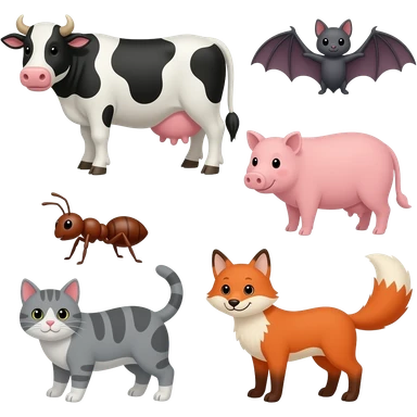 Spell it out: Cow, pig, bat, ant, cat, fox, emoji