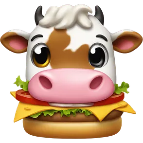 Cow standing up eating a burger joyfully emoji | AI Emoji Generator