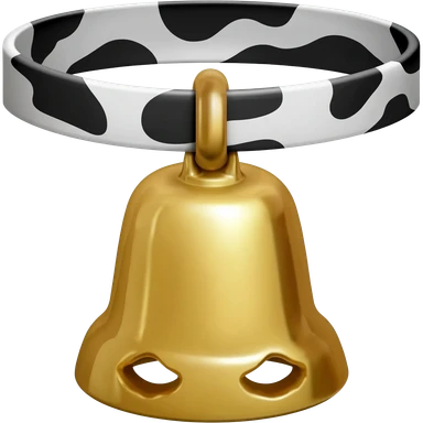 plain gold grater-formed cowbell on a collar with black and white cow pattern emoji