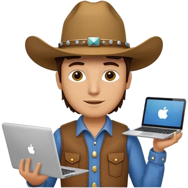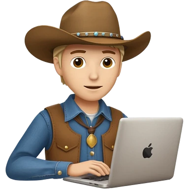 cowboy coder with a laptop infront and he is white emoji | AI Emoji Generator