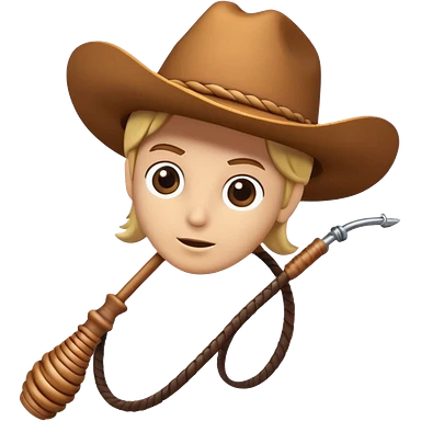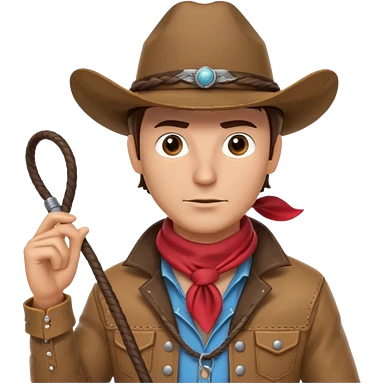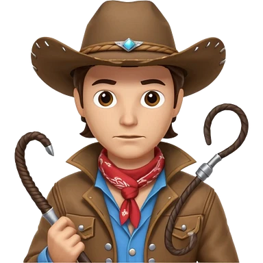 cowboy man holding a whip, dynamic pose, western outfit, adventure vibe, 3D cartoon, mobile game icon style, clean background, no text, no watermark