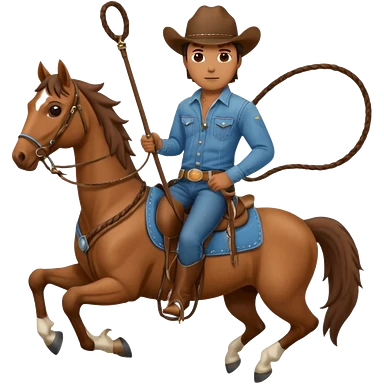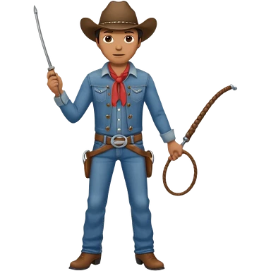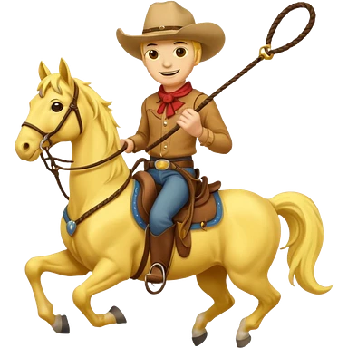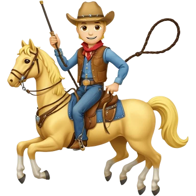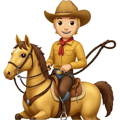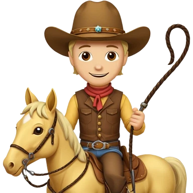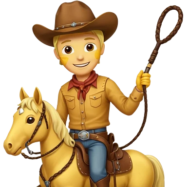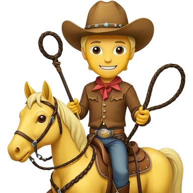 Cowboy riding a horse with whip. With yellow skin and smilling. Simplize it and I need a full pic with horse. Like I need the leg part too emoji | AI Emoji Generator