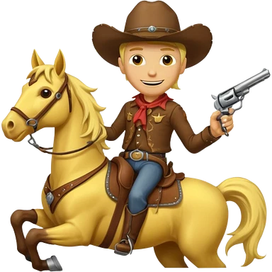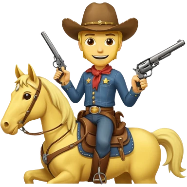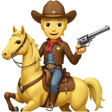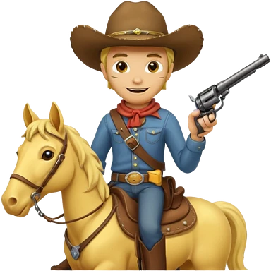 Cowboy riding a horse with revolver. Cowboy With yellow skin and smilling. Simplize it and I need a full pic with horse. Like I need the leg part too emoji
