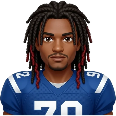 blue football jersey black and red dreads that are long and have shoulder pads too emoji