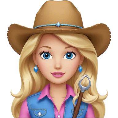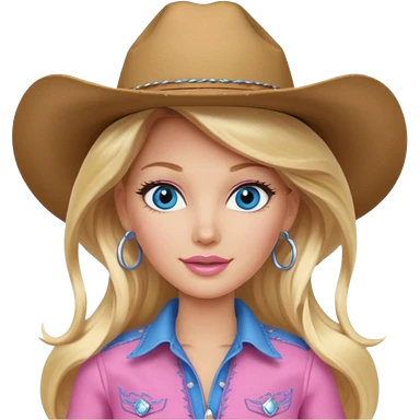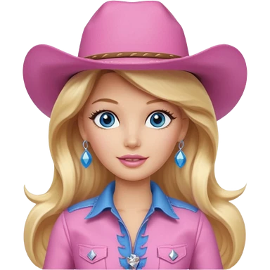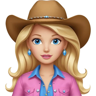 Cowgirl barbie in a pink outfit with cowboy hat with long blonde hair and blue eyes emoji
