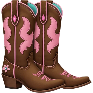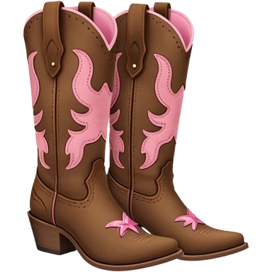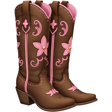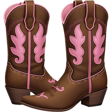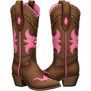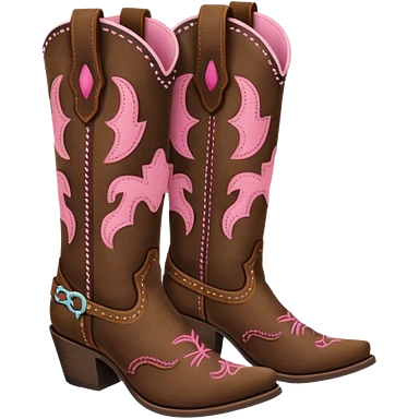 Cute brown square toe cowgirl boots with pink ribbon emoji