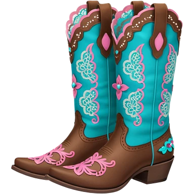 cowgirl boots cute a tiny bit of red and pink on it NO TEAL a little girlie emoji | AI Emoji Generator