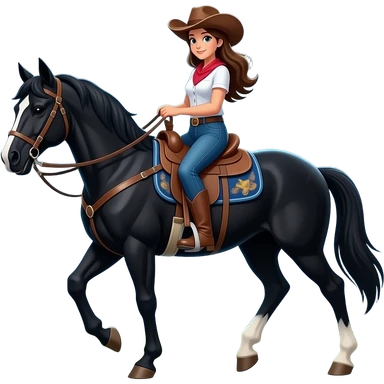 cowgirl on horse riding into sunset emoji