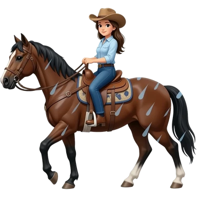 cowgirl walking horse in thunderdtorm emoji