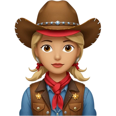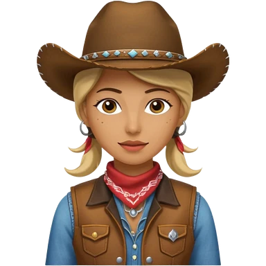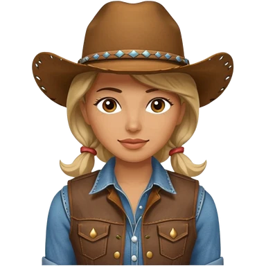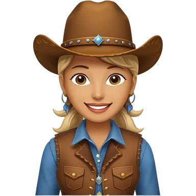 Cowgirl, pale skin, blue eyes, blonde hair, smiling emoji