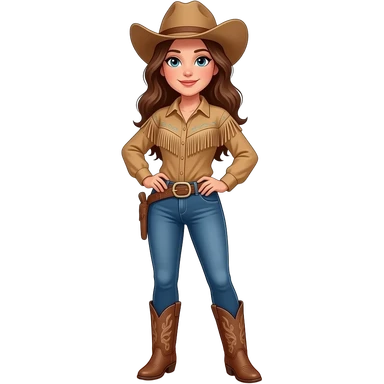 cowgirl woman who has long black hair, light skin, dark brown eyes emoji
