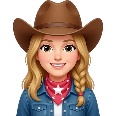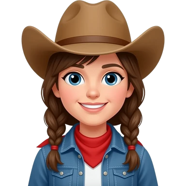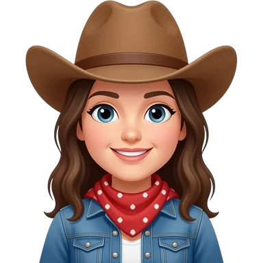 cowgirl emoji black hair long open, darb brown eyes emoji