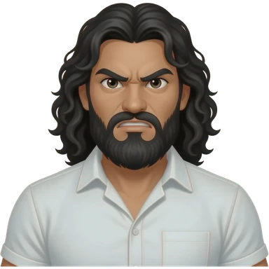 TEXICAN OUTLAW, with a really long beard, long, black, curly hair, super muscular, with angry eyes, beard is black too, wearing all white emoji