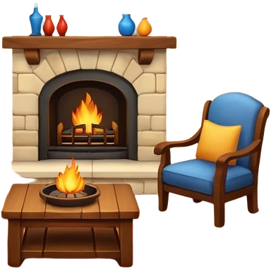 Cozy handsome middle aged man sitting next to a nice fireplace with a hot apple cider, blanket, and plate of chocolate cookies. emoji