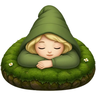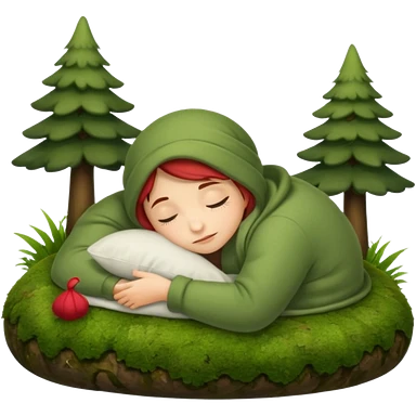 cozy forest character curled up on moss pillow with nightcap emoji | AI Emoji Generator