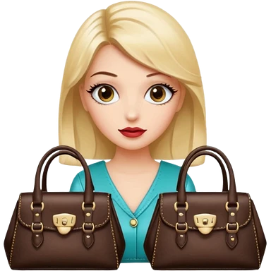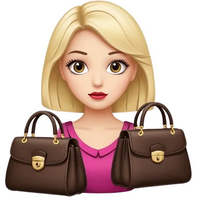 Glam girl with eyelasher looking left and right between two purses, playful puzzled expression — can’t decide between two options emoji