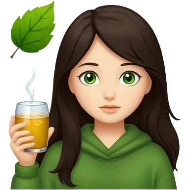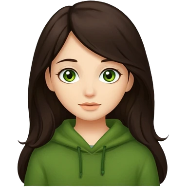 Cozy girl long dark brown hair and green/ hazel eyes emoji