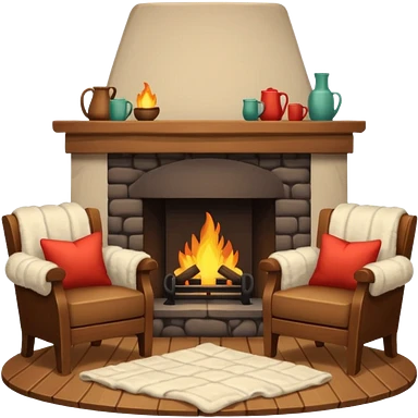 Cozy handsome middle aged man sitting next to a nice fireplace with a hot apple cider, blanket, and plate of chocolate cookies. emoji