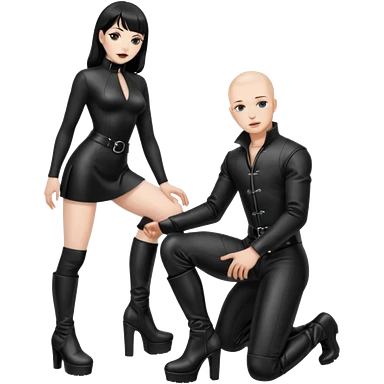 Create a Dominatrix with platform boots and a male slave next to her emoji