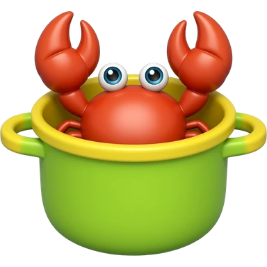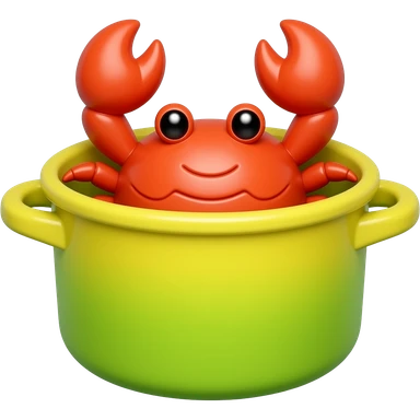 3D emoji-style illustration of a seafood boil wrapped in a clear plastic bag, featuring crab legs, corn on the cob, broccoli, potato, and shrimp. emoji