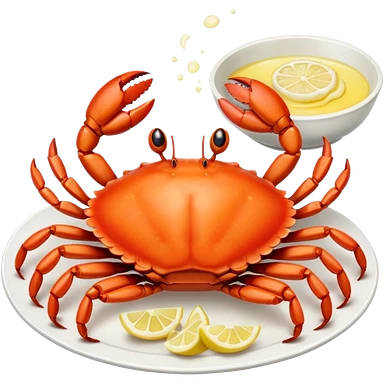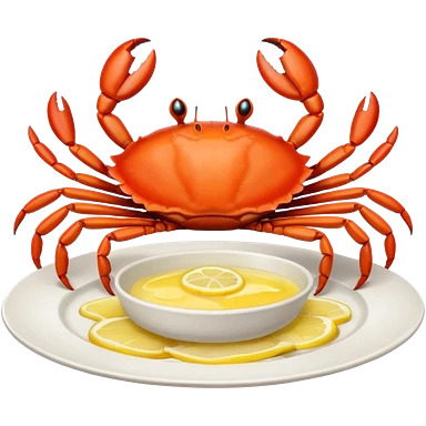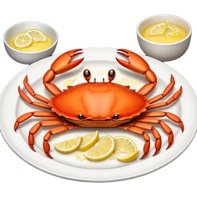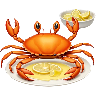 crab on a porcelain platter with lemon emoji