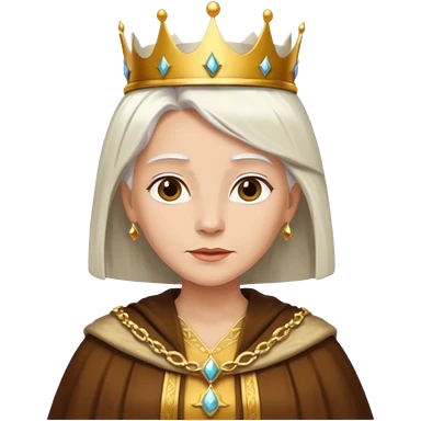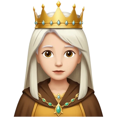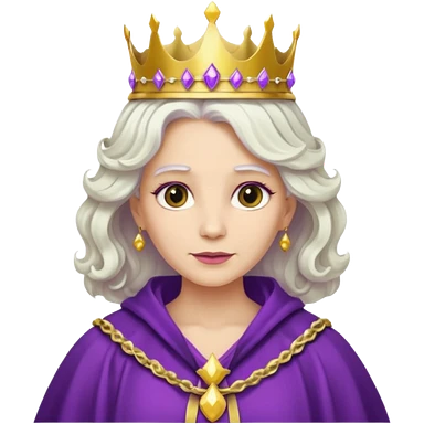 Queen with long white hair – jeweled golden crown, red dress. emoji