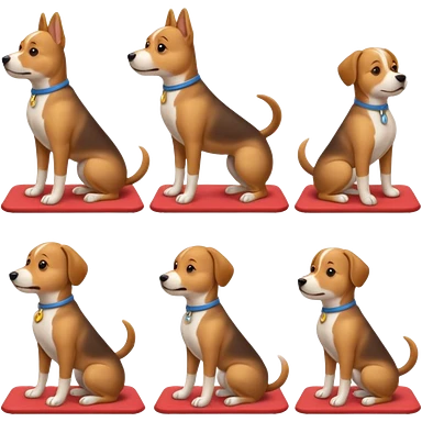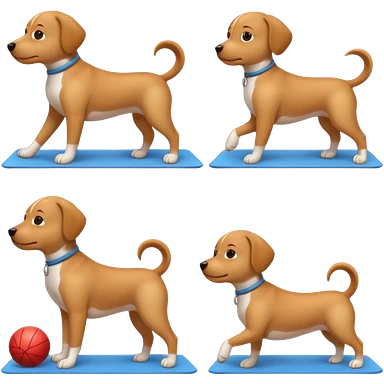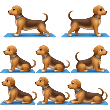 craeate me a series of emojis for those excersises (dog). I want seperate emojis for each excersise Nose Sit Lay down Spin Focus Drop Walk next to me emoji