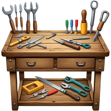 crafting table with tools, stone, wood, glass, sand, ... like a minecraft style cube crafting table emoji