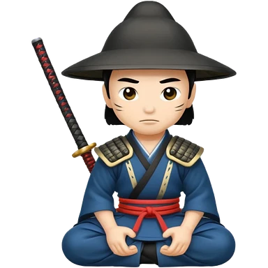asian white skin Samurais in Hat, Samurai kneeling emoji