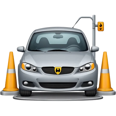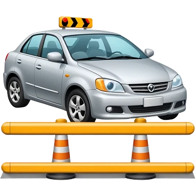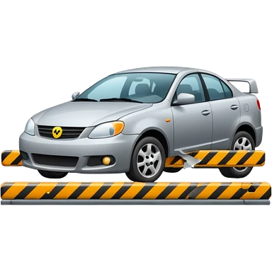 car crashed to a trafic barrier barrier in front of car and car front panel broken emoji