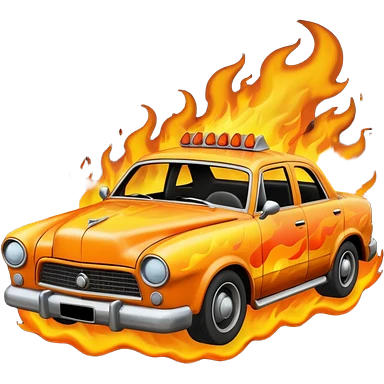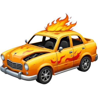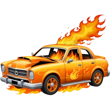 crashed car in flames emoji