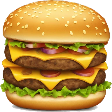 classic hamburger emoji with sesame seed bun, lettuce, tomato, cheese, beef patty emoji