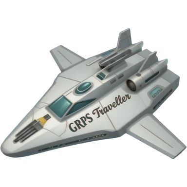 "GURPS Traveller" on a starfield with a free trade starship in the background in a landscape format, size of 1600 x 800. emoji
