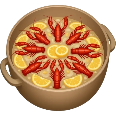 crawfish boil, crawfish spilling from pot, lemon wedges emoji