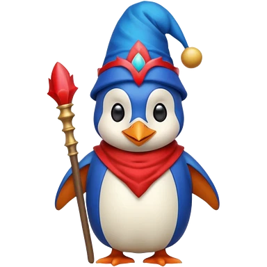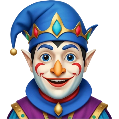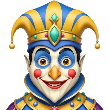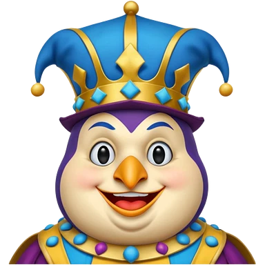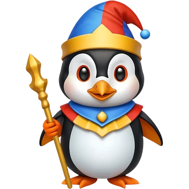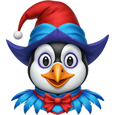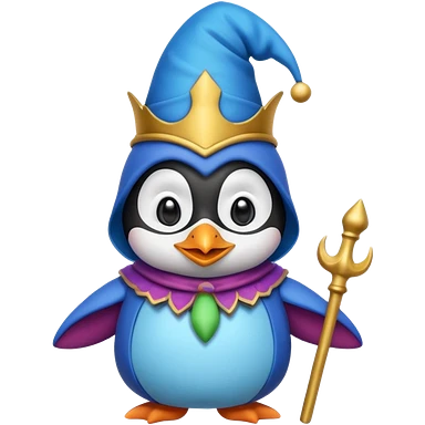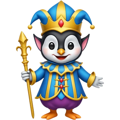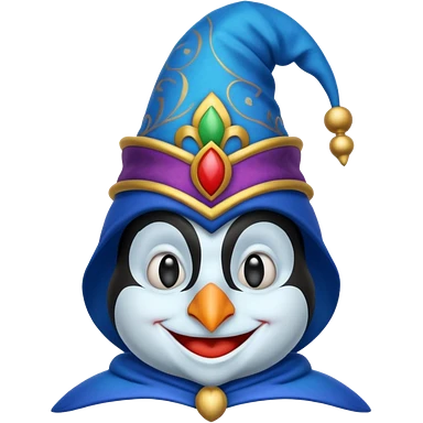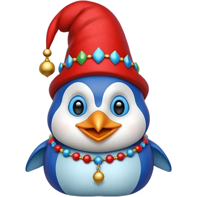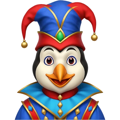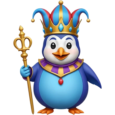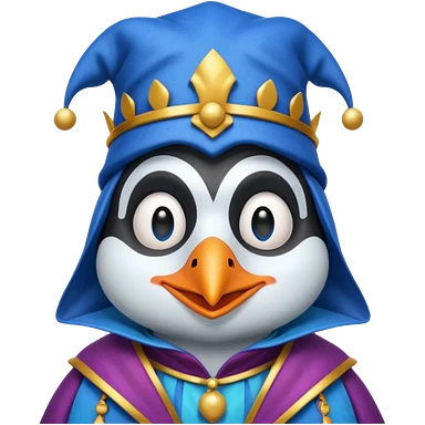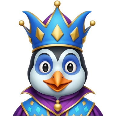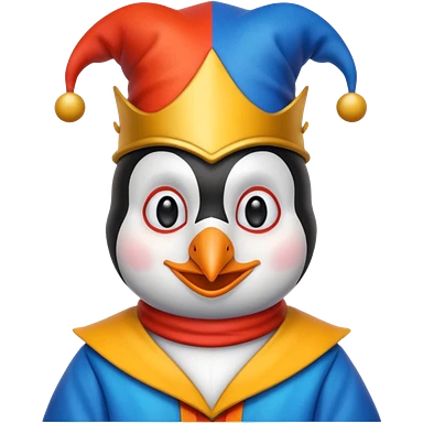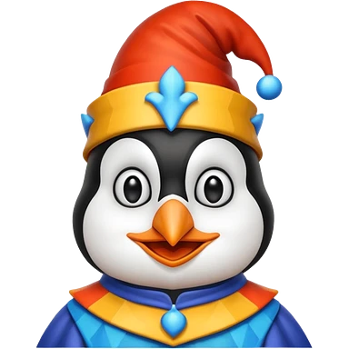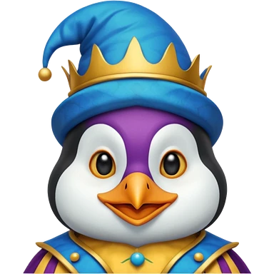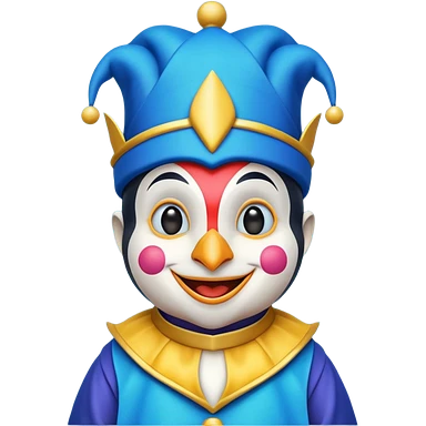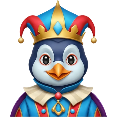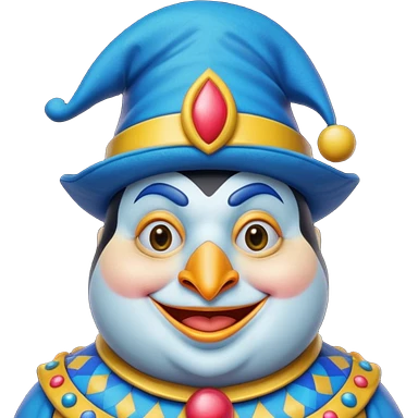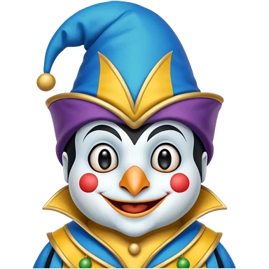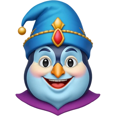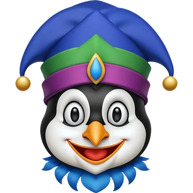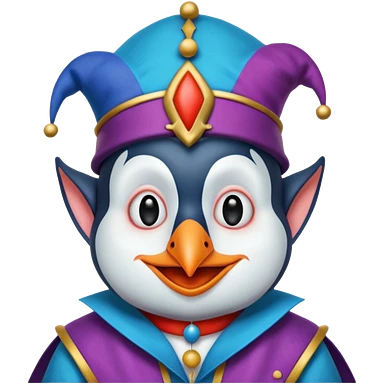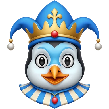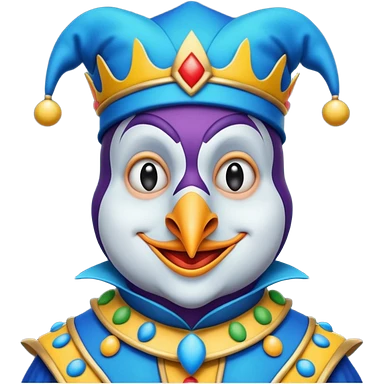 crazy colorful neutral penguin jolly joker, medieval, vintage, court jester, mac os icon, blue color emoji | AI Emoji Generator